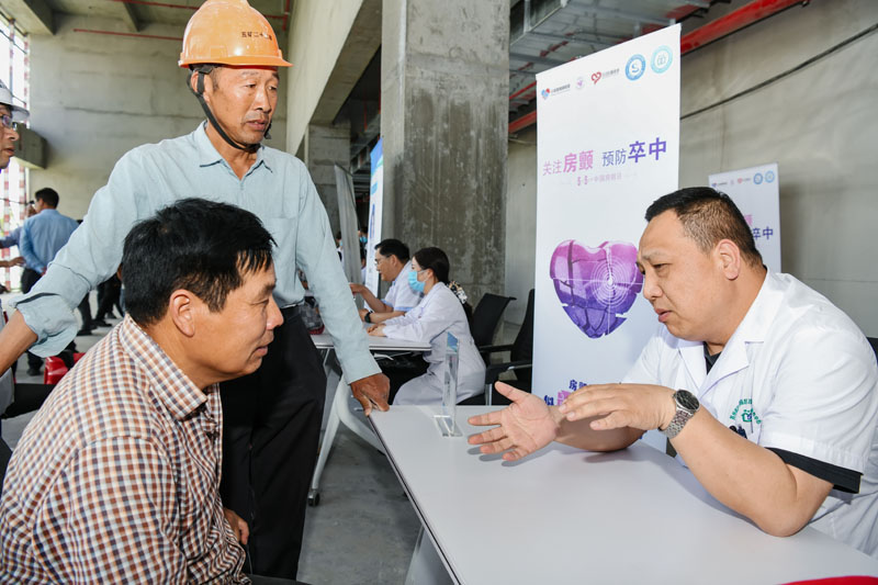 本次活動,由“城芯同筑”黨群服務(wù)站精心策劃,周密安排。宿遷市第一人民醫(yī)院內(nèi)科黨總支書記、大內(nèi)科副主任、風(fēng)濕免疫科主任臧銀耐心解答現(xiàn)場工友的健康疑問,根據(jù)工友的身體情況給予專業(yè)的醫(yī)療建議及指導(dǎo),得到了現(xiàn)場工友的一致好評?;顒蝇F(xiàn)場以建筑工地常見的意外傷害應(yīng)急處理為主題開展健康知識講座,生動形象的講解處理意外傷害相關(guān)知識及應(yīng)急救援措施,同時現(xiàn)場開展全國“愛眼日”及中國“房顫日”等宣傳教育活動。